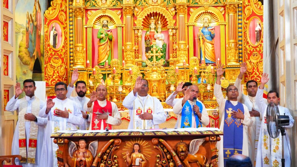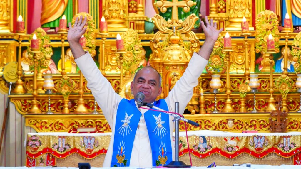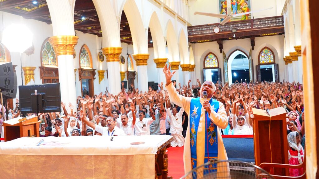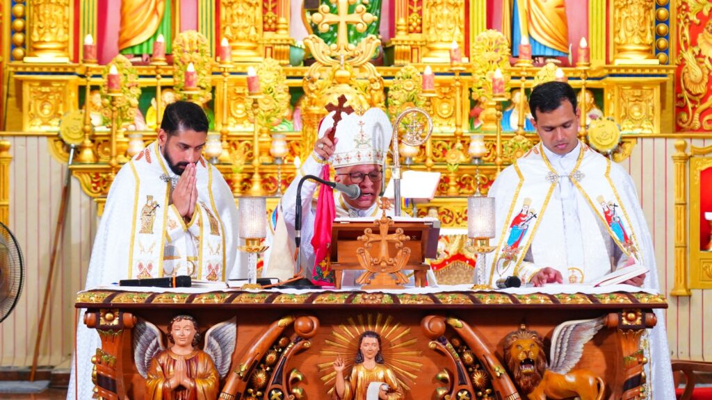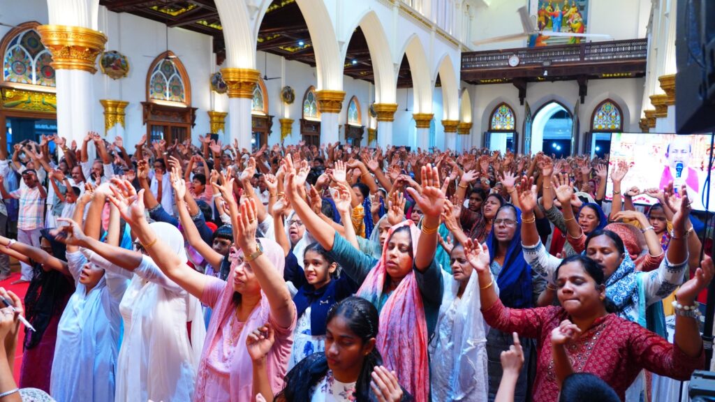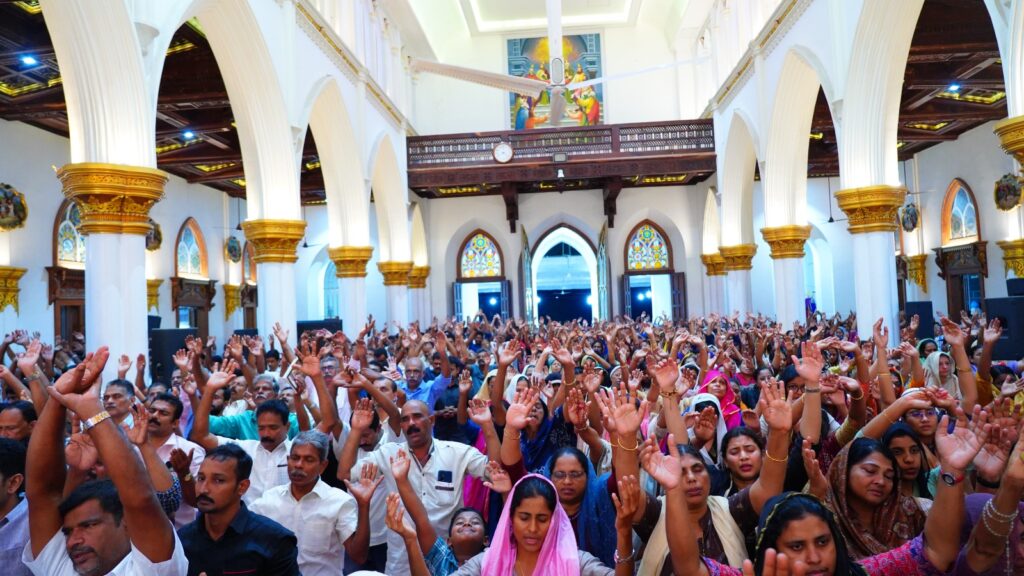 കുറവിലങ്ങാട്: ബഹുമാനപ്പെട്ട സേവ്യർ ഖാൻ വട്ടായിലച്ചൻ നേതൃത്വം നൽകുന്ന കുറവിലങ്ങാട് അഭിഷേകാഗ്നി ബൈബിൾ കൺവെൻഷൻ നാലാം ദിനത്തിലെ ശുശ്രൂഷകൾ സമാപിച്ചു. ജപമാലയോടെ ശുശ്രൂഷകൾ ആരംഭിച്ചു. ദിവ്യബലിക്ക് ഷംഷാബാദ് രൂപത സഹായ മെത്രാൻ മാർ ജോസഫ് കൊല്ലംപറമ്പിൽ പിതാവ് മുഖ്യകാർമികത്വം വഹിച്ചു. തുടർന്ന് ബഹുമാനപ്പെട്ട ബിനോയി കരിമരുതിങ്കൽ അച്ചൻ വചനം പങ്കുവെച്ചു. വട്ടായിലച്ചൻ തുടർന്നുള്ള ശുശ്രൂഷകൾ നയിച്ചു. ദിവ്യകാരുണ്യ ആരാധനയിൽ വിദ്യാർത്ഥി വിദ്യാർത്ഥിനികൾക്കായി പ്രത്യേകം പ്രാർത്ഥിച്ചു.