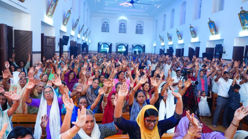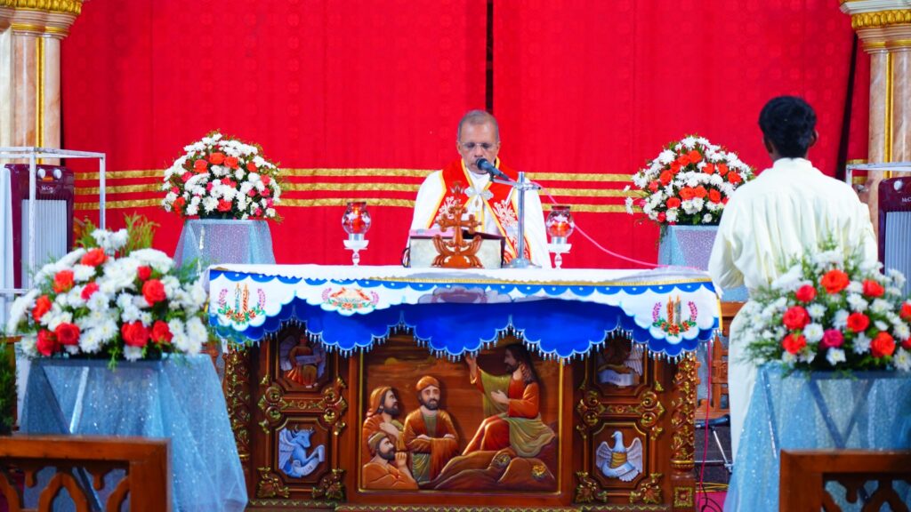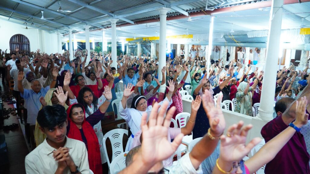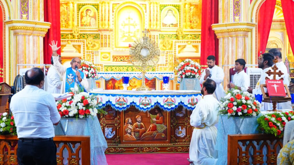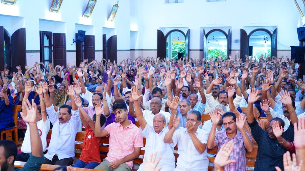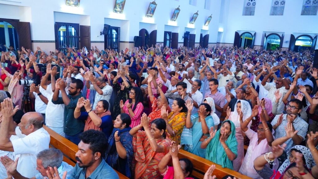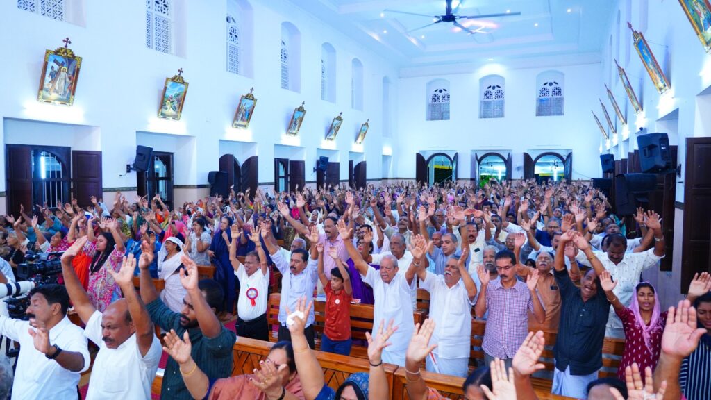 കോട്ടയം: ഫാ. സേവ്യർ ഖാൻ വട്ടായിൽ PDM നേതൃത്വം നൽകുന്ന തുരുത്തി അഭിഷേകാഗ്നി കൺവെൻഷൻ മൂന്നാം ദിനത്തിലെ ശുശ്രൂഷകൾ സമാപിച്ചു. ജപമാലയോടെ ശുശ്രൂഷകൾ ആരംഭിച്ചു. തുടർന്ന് ദിവ്യബലിക്ക് ചങ്ങനാശ്ശേരി അതിരൂപത വികാരി ജനറാൾ ബഹുമാനപ്പെട്ട ആൻ്റണി എത്തക്കാട് അച്ചൻ മുഖ്യകാർമികത്വം വഹിച്ചു. തുടർന്ന് വചന പ്രഘോഷണ ശുശ്രൂഷകളും സ്തുതിപ്പ് ശുശ്രൂഷകളും വിടുതൽ ശുശ്രൂഷകളും നടത്തപ്പെട്ടു. ആദ്യ സെഷൻ ചെത്തിപ്പുഴ കാർമൽ മൗണ്ട് ധ്യാനകേന്ദ്രത്തിലെ ബഹുമാനപ്പെട്ട സിസ്റ്റർ ടെസ്ലിൻ ദൈവവചനം പങ്കുവെച്ചു. തുടർന്നുള്ള ശുശ്രൂഷകൾ ബഹുമാനപ്പെട്ട വട്ടായിലച്ചൻ നയിച്ചു. ദിവ്യകാരുണ്യ ആരാധനയിൽ വിദ്യാർത്ഥികൾക്കും യുവജനങ്ങൾക്കും വേണ്ടി പ്രത്യേക പ്രാർത്ഥനകൾ നടത്തപ്പെട്ടു.