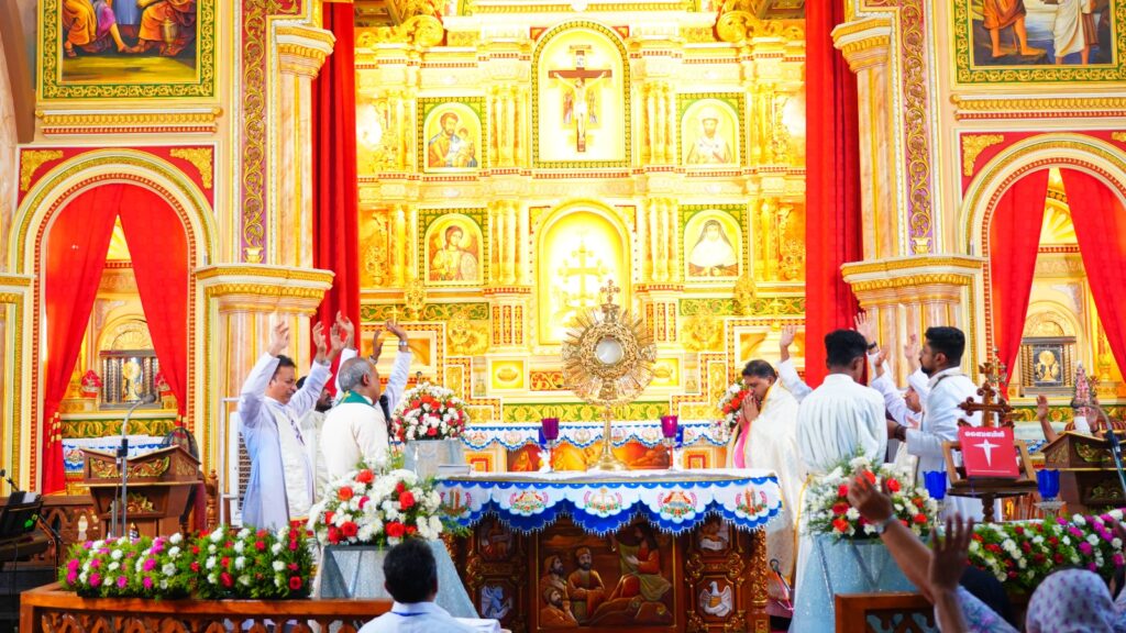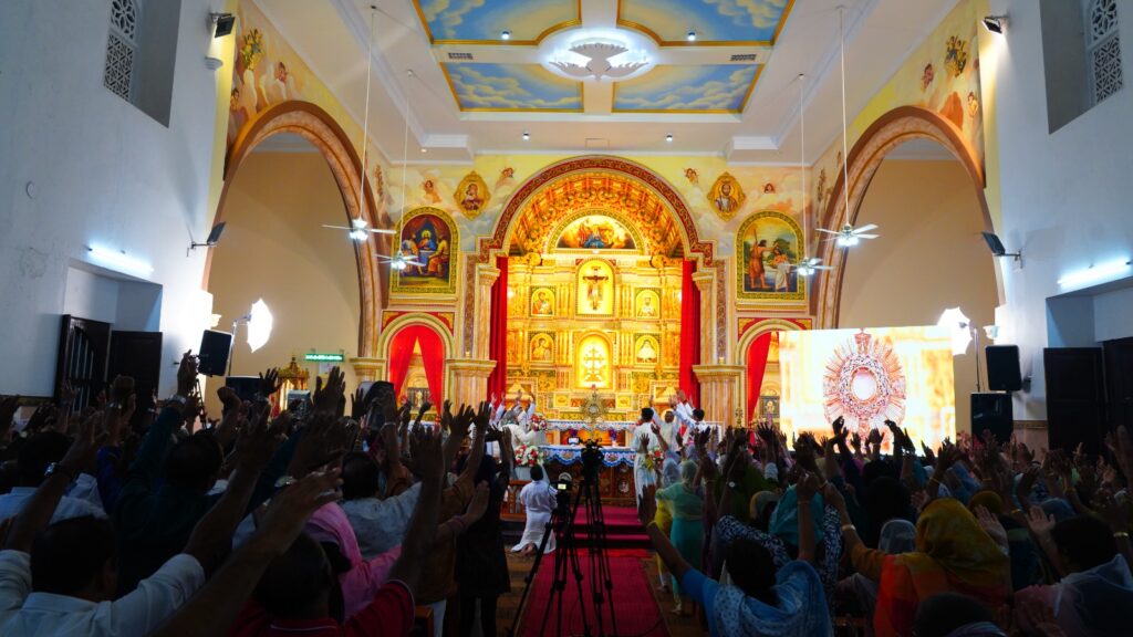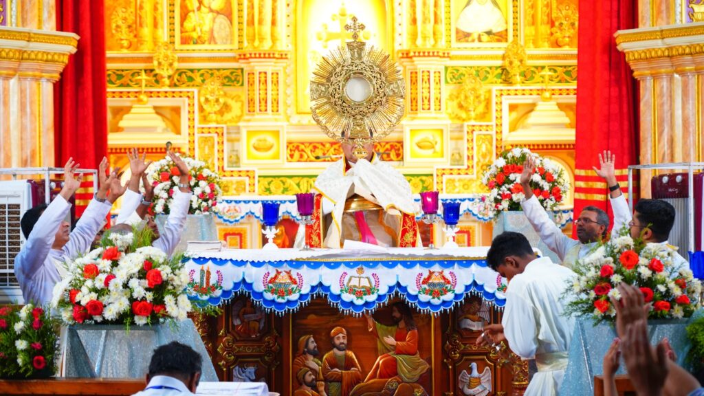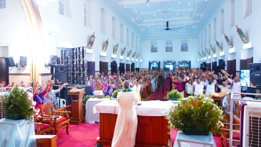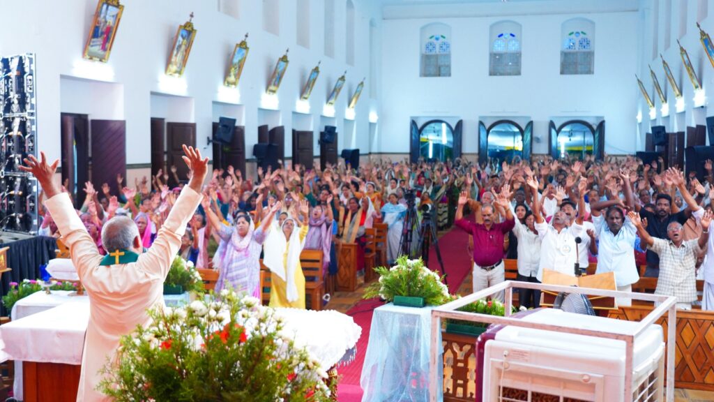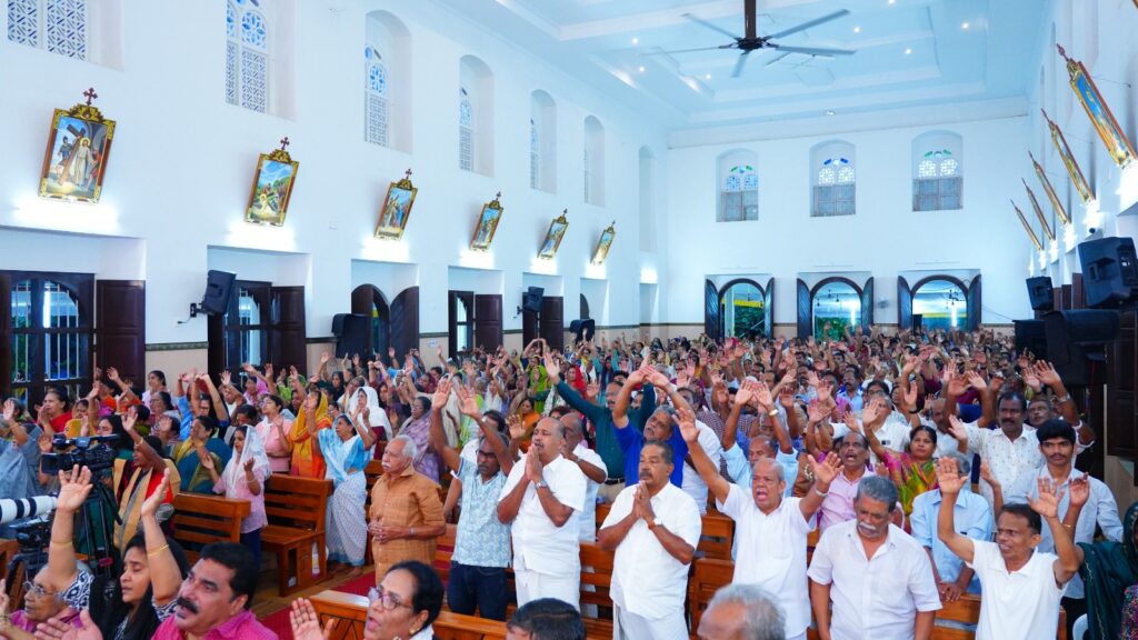 കോട്ടയം: ഫാ. സേവ്യർ ഖാൻ വട്ടായിൽ PDM നേതൃത്വം നൽകുന്ന തുരുത്തി അഭിഷേകാഗ്നി ബൈബിൾ കൺവെൻഷന്റെ നാലാം ദിനത്തിലെ ശുശ്രൂഷകൾ സമാപിച്ചു. ഉച്ചകഴിഞ്ഞു ജപമാലയോടെ ശുശ്രൂഷകൾ ആരംഭിച്ചു. ദിവ്യബലിക്ക് ചങ്ങനാശ്ശേരി അതിരൂപത വികാരി ജനറാൾ ഫാ. സ്കറിയ കന്നിയാകോണിൽ മുഖ്യകാർമികത്വം വഹിച്ചു. തുടർന്ന് ബ്രദർ വിൻസെന്റ് ആദ്യ സെഷൻ വചന സന്ദേശം നൽകി. തുടർന്നുള്ള ശുശ്രൂഷകൾ വട്ടായിലച്ചൻ നയിച്ചു. രാത്രി 09:00 മണിയ്ക്ക് ആരാധനയോടെ ശുശ്രൂഷകൾ സമാപിച്ചു.